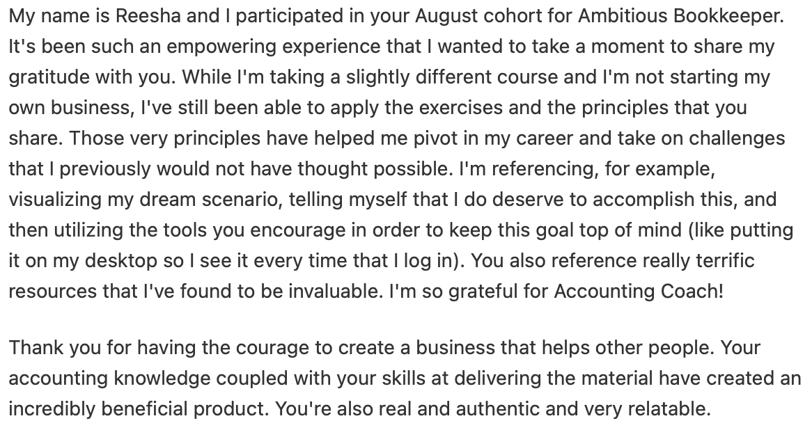If after attending the first day of the Bookkeeping Biz Workshops and doing the exercises you don’t feel as though you have received at LEAST 10x’s worth of value, email support@ambitiousbookkeeper.com no later than the morning of Day 2 and we’ll send you a full refund, no questions asked.